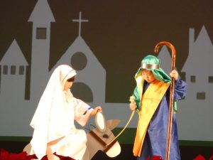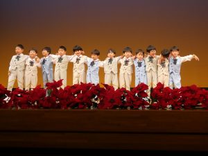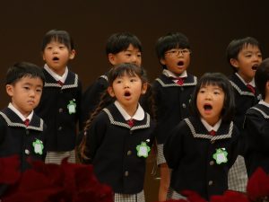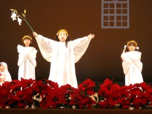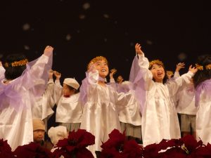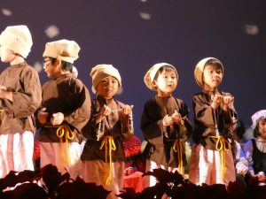 らいおん組(5歳児クラス)最後のおゆうぎ会でした。毎年、セリフの多い大役は(マリア様、ヨゼフ様、3人の博士、大天使と小天使2人)合計8人です。役決めは子ども達だけの話し合い、決着がつかないとジャンケンで決めます。じゃんけんで負ける子は泣き出す子もいるので、この時期は毎年胸が痛いです。今年は、先生たちが知恵を出し「みんなが主役」をテーマ―にして全員の出番を考えてくれました。園児代表あいさつや聖劇の幕ごとの説明などみんなの出番がありました。これは、子ども達にとっても良い経験の場となりました。