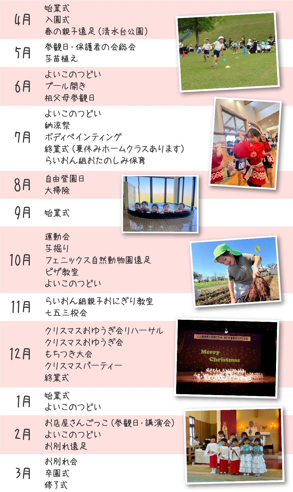 キリストの愛の精神に基づく教育を行う 一人ひとりの個性を大切にする教育を行う 限りない可能性を秘めた子ども達の感性と創造性を豊かにする教育を行う